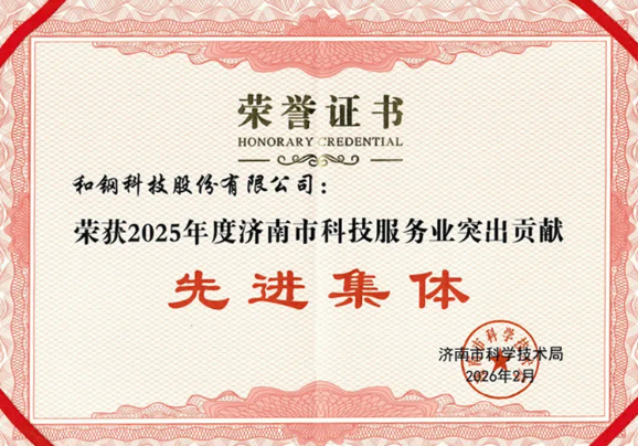 近日,和钢科技股份有限公司(简称“和钢科技”)获评济南市科学技术局颁发的“2025年度济南市科技服务业突出贡献先进集体”称号,该奖项旨在表彰企业在科技创新、产业赋能及服务区域经济发展等方面作出的突出贡献。